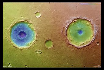 Desde una vista cenital, el aspecto de los cráteres gemelos 'Arima', en la región marciana de 'Thaumasia Planum', recuerda a unos ojos sorprendidos. Las imágenes obtenidas por la sonda Mars Express de la Agencia Espacial Europea (ESA) permiten conocer cómo se crearon estos círculos de 50 km de diámetro escarbados en la superficie de Marte, muy comunes en el planeta rojo y en diversas lunas del Sistema Solar.