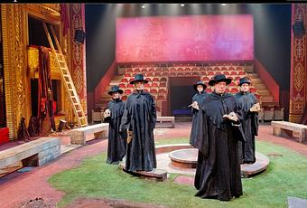 La liviana estructura dramática de «Los cuentos de la peste» exige una puesta en escena imaginativa y brillante. La que plantea Joan Ollé me parece desigual. Ha vaciado el patio de butacas y lo ha convertido en el escenario, situando al público alrededor, utlizando los palcos y dos gradas construidas al efecto; el espectáculo obtiene así movilidad, dinamismo y cercanía, y resulta atractivo. No acierta Ollé sin embargo con el principio del espectáculo, en el que Vargas Llosa, de pie ante un atril, comienza la lectura de la obra, ni tampoco me parecen adecuadas algunas decisiones de dirección, como por ejemplo los acentos «pijos» -adecuadamente suavizados en la función con respecto al ensayo que ví hace dos semanas- en una de las historias. Pero estas, en líneas generales, se cuentan con agilidad y energía. No así la historia central entre Ugolino y Aminta, que se presenta abrumada y oscura.