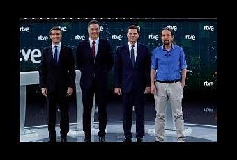 Si la preparación de los debates que se han celebrado en la presente campaña electoral ya dio motivos para la polémica, el desarrollo de los mismos no ha estado exento también de controversias y discusiones por determinar qué candidato ha resultado vencedor o cuáles no han colmado las expectativas que despertaban. Con todo, tuvieron dos oportunidades para errar y corregir sus intervenciones porque, a causa de la polémica inicial, fueron dos los debates finalmente celebrados en días consecutivos y en dos medios de comunicación distintos: en la televisión pública (TVE), el primero de ellos, y en otra privada (A3), el segundo y último. Había mucho en juego: casi la mitad del electorado se mostraba indecisa, según las encuestas, sobre en quién confiar su voto. Nadie tenía ganado el partido y la última oportunidad de remontar el marcador eran esos dos debates de audiencias millonarias a cinco días de ir a las urnas. Y la verdad es que los cuatro candidatos participantes de la confrontación televisiva hicieron, cada uno a su estilo y manera, todo lo posible por ganar el envite, aunque con resultados controvertidos y discutibles. La polémica que ha acompañado estos cara a cara no se resolverá hasta el recuento definitivo de los votos.Debate en TVEEn el primer debate, en Televisión Española (TVE) el día 22, todos los candidatos actuaron según lo esperado y con estrategias que reflejan los distintos puntos de partida de cada uno de ellos, consistentes en atacar al presidente del Gobierno, por figurar como favorito en los sondeos, y no castigar en demasía a quien podría ser socio en una probable coalición gubernamental, a partir del próximo lunes. Así, Albert Rivera (Ciudadanos), agresivo y mostrando un exceso de sobreactuación, fue contundente en su ataque feroz contra Pedro Sánchez (PSOE, presidente del Gobierno) desde el primer minuto. Acusó a Sánchez de pactar con Quin Torra (presidente de la Generalitat catalana) y de querer indultar a los políticos independentistas presos a los que juzga el Tribunal Supremo. También tuvo acusaciones contra el líder de Podemos cuando afirmó que Iglesias (Pablo) y Sánchez (Pedro) eran lo mismo: una calamidad para el país y un peligro para el bolsillo de los ciudadanos.