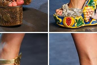 Me declaro fan absoluta de las cuñas, tan trabajadas y con ese punto arquitectónico basado en los templos y teatros antiguos de Sicilia. Las sandalias como si fuesen centuriones romanos, me parecen otro punto fuerte.