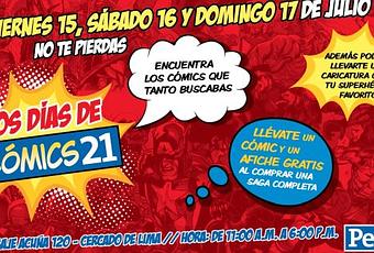 Teniendo en cuenta la buena recepción por parte de los seguidores de superhéroes como Batman, Superman y Wonder Woman; Perú21 se complace en anunciar Los días de Cómics21, un evento que se realizará del 15 al 17 de julio, en el que los fans de cómics podrán adquirir todas las historietas publicadas, completar los números de sus sagas favoritas y otras sorpresas más.