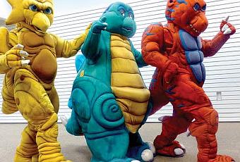 Creados en 1991 por Sheryl Madison Lancaster y Dennis Lancaster en Tracy (California, Estados Unidos), los "Dangerous Dinos" son Bubba (un bebé estegosaurio de dos años), Rocko Gecko (un estiracosaurio de dieciséis años) y Ty Rex (un tiranosaurio de quince años) y recorren toda la costa oeste norteamericana con un mensaje: "Dinos don’t do drugs" ("Los dinos no toman drogas"). Dentro de los bichos, se encuentran William Gibbon, Steven Fontaine y William Muetzenberg, que van a centros comerciales y escuelas para concienciar a los niños para que no consuman drogas. La iniciativa es loable, pero con esas pintas no se yo si van a convencer a alguien...