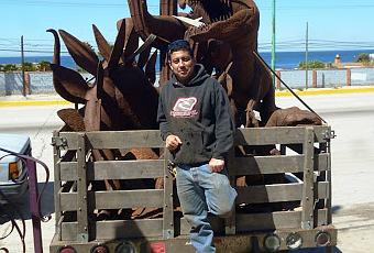 Edgar Díaz es un escultor mexicano que se dedica a construir figuras metálicas de dinosaurios. Además realiza esculturas de otros animales y entre sus futuros proyectos se encuentra el diseño de unas mesas con trilobites de metal incrustados en piedra o marmol. Mientras esperamos este "comedor paleozoico", dejamos una muestra de lo que Edgar puede hacer: