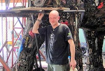 Aunque nació en Chicago (Estados Unidos), Tom Samui creció en Suiza y muy pronto descubrió su pasión por la escultura. Ahora, vive en Richmond (Virginia, Estados Unidos) y continúa desarrollando su hobby, que ha convertido en su profesión. Lo curioso de sus obras es que están hechas con piezas recicladas de coches y motocicletas, que limpia, pule y barniza para ensamblarlas y crear auténticas maravillas. Recrea personajes de ficción y reales, animales y como no, dinosaurios. Aquí dejamos una muestra de sus esculturas dinosaurianas:
