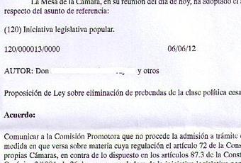 La contestación de la mesa del Congreso (mayoría absoluta del PP, con miembros del PSOE y de CiU) firmada por Celia Villalobos, por ausencia de Jesús Posada es negativa: