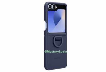 El Galaxy Z Flip 6 todavía tiene una pantalla tipo carpeta y dos cámaras con flash LED en el exterior. También puedes ver su fondo de pantalla predeterminado en la imagen de arriba. El teléfono se puede ver en su funda de silicona con presilla, lo que hace que el dispositivo sea fácil de sostener y usar. En las imágenes a continuación, se puede ver el teléfono en las mismas condiciones, pero en colores azul oscuro y menta.