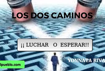 Los Dos Caminos ¡¡ Luchar o Esperar ¡¡ Estamos en una encrucijada como pueblo, como país , tenemos 2 caminos que escoger, una vía nos lleva directamente hacia la anarquía hacia el desorden hacia la violencia que nos producirá un ''huracan revolucionario'' ( pero este si traera cambios profundos y duraderos en la sociedad venezolana ) unos tornados que se producen por medio de la explosión de la sociedad venezolana, de la desesperación del hambre, de la agonía, del saber que no tienes medicamento para sanar tus enfermedades, tus dolencias, del dolor al ver algún familiar morir de mengua en un hospital ( publico o privado ya que las clinicas ya sufren por la escasez ) y ni siquiera tienes una atención adecuada por falta de medico ya que la mayoría ha huido despavorido hacia el exterior.