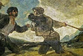 Fragmento del relato inspirado en el cuadro homónimo, titulado también "Riña a garrotazos", de Goya, perteneciente a "De vaqueros y fronteras" (descarga gratuita).
