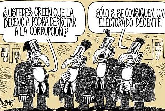 Hay muchos korruptos que tratan hoy de bañarse en lejía,secarse con una lija, y de plantear un relativismo absurdo donde si eres corrupto, te atraparon en ello y pediste disculpas quedas totalmente capacitado para ser el nuevo funcionario publico mas importante de la ciudad. Pero seamos sinceros jamas habrá ladrón, estafador o criminal que no trate de ubicarse en la situación de privilegio y ventaja para seguir cometiendo sus fechorías, es lógico, es de esperarse. Pero que extraño mecanismo hace que el elector crea a pie juntillas eso de "que robe pero que haga", y no estamos hablando de filosofía, sino la vocación de lemmings arrojándose al barranco del elector peruano. Que no es capaz de tomar una decisión y mantenerla hasta final, que le han hecho creer que si alguien roba un s/.1 sol y con otro sol paga a un tercero para que haga la obra esta bien, cuando si no se robara se podría hacer el doble. La diferencia es evidente,la pueden hacer los nuevos medios, las redes sociales , en ellos esta en convencerse que el voto es una opinión y no una apuesta por el caballo ganador.