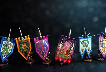 Cómo pintar un portaestandarte de los Elfos Oscuros. Primera parte. Cómo pintar un portaestandarte de los Elfos Oscuros. Segunda parte.Estandarte de batalla de los Elfos Oscuros