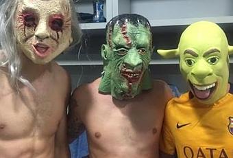 Así celebraron en Getafe los jugadores del Barcelona su victoria en Getafe en la tarde de Halloween de 2015.