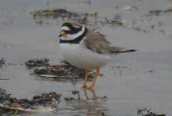 En Bañugues hay un grupillo de 12 chorlitejos grandes Charadrius hiaticula, ya desde finales de octubre nada menos. No es fácil controlarlos con marea baja pero sí en pleamar, y 12 es el número que llevo contando desde hace tiempo. En principio es buena noticia, ya que no hay bajas...