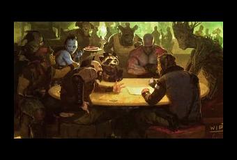 Pero lo que es mejor, en un dibujo conceptual de la película incluido en la recopilación de películas de la Fase Uno, en el que vemos a los Guardianes en una especie de cantina a lo Star Wars, Star-Lord parece tener un Cubo Cósmico en la mano. No diremos más.
