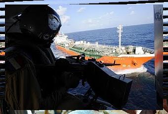 *La piratería ha sido la justificación utilizada por Estados Unidos y sus aliados para militarizar el Cuerno Africano. La foto, tomada por AFP, muestra un soldado francés en un helicóptero Panther custodiando al buque Hartati, de Singapur, en el Golfo de Adén.