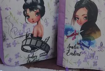La bolsa de aseo también lleva el nombre bordado, en esta ocasión el perfil elegido fue el de Audrey Hepburn.