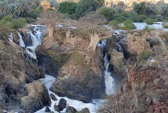 Tras varios días viajando por un paisaje seco y árido llegamos a las Cataratas Epupa, en el río Kunene, que hace de frontera entre Namibia y Angola. Un derroche de agua que pasa indiferente por el seco paisaje del Kaokoland /Kunene en el norte de Namibia.