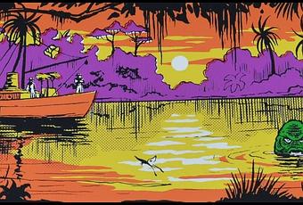 No podemos olvidar al clásico absoluto: el Creature From the Black Lagoon. Desde la pinball machine con colores vibrantes hasta los conceptos inéditos que Vincent Di Fate ideó en 2006 para un remake que nunca vio la luz, esta figura es la realeza indiscutible del reino anfibio. Y luego está la joya del disparate: el concepto de Jack Kirby para un uniforme futurista de los Green Bay Packers, con jugadores-hombres pez listos para el touchdown.