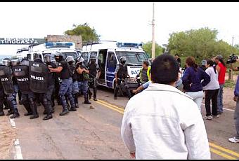 Mientras se invoca la soberanía nacional en Malvinas, las mineras copan los medios de la región y organizan la 'seguridad' contra el pueblo en lucha.