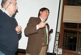 El Dr. Ocete Rubio dividió su charla en dos partes, ambas apoyadas por un interesante material icónico. En la primera realizó un amplio y detallado recorrido por las diferentes poblaciones de vides silvestres o salvajes, insistiendo en la necesaria protección de las mismas para su estudio y posterior aplicación práctica en las vides domesticadas. Indicó la influencia en su trabajo de Miguel Lara Benítez (1958), del Centro IFAPA "Rancho de la Merced" de Jerez, con el que colabora desde 1990, y al que llamó "seguidor de Simón de Rojas Clemente y Rubio (1777-1827)". Realizó un completo y didáctico recorrido por las vides silvestres, así como algunos procesos de domesticación y de vinificación. Mostró las poblaciones que aún se conservan en Andalucía e insistió en la necesidad de su protección.Contestó a las multiples preguntas de los asistentes y fue muy aplaudido.