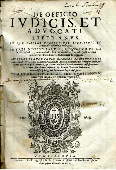Se estanca la publicación de nuevas normas, leyes o disposiciones, pero es un siglo muy rico en juristas y publicaciones jurídicas que los mismos envían a la imprenta. Comentamos a continuación, los más notables: Francesc Ferrer y Nogués, Commentaria sive glossemata ad utiliorem quandam ex constitutionibus Principatus Cathaloniae incipientem, Los impubers sub rubro, De pupillaribus, et aliis substitutionibus. Era Juez Real de Lleida y profesor de la Universidad Sertoriana que escribe fundamentalmente sobre los impúberes, sobre los menores de edad y las viudas. Publica en Lleida con Menestral en 1617, 1618 y en 1629 con Margarita Anglada, también en la misma ciudad. Lluis de Peguera (Loudovico a Peguera), fundamentalmente fue un criminalista escribe sobre cuestiones criminales, Liber quaestionum criminalium in actu practico frequentium et maxime conducibilium, impreso con Humbertum Gotard en 1585, con Cendrad en 1605 y 1611, En Venecia con Samasccini en 1608, en Turín en 1612 y en Barcelona con Lacavallería en 1649 y con Figueró, en 1674 y 1687. Ya había fallecido cuando se publica Decisiones aureae in acto practico frequentes en 1605 con Jacobi Cendrat en Barcelona, n folio a dos columnas, en 450 páginas conteniendo 200 decisiones. Acacii de Ripoll, hombre y jurista claro y sencillo, profesor también de la Universidad Sertoriana en Huesca pero abogado de la Lonja. Publica en Ginebra, Variae iuris esolutiones multis diversorum senatuum, en folio mayor, a dos columnas con Albert en 1617, en Lyon con Prost en 1630 y 1631, en Barcelona con Lacavallería en 1648 y 1655 y Regaliarum Tractarus con Gabriel Nogués, Francisco Menescal y Gabriel Nogués en Barcelona, 1644. Xammar, Joan Pau es un jurista que se adelanta a su tiempo y comienza ya a publicar obras esencialmente prácticas para el uso cotidiano de letrados y juristas. Publica De Officio Judicis et Advocati con Romeu en Barcelona en 1639, así como Resolutiones sacri regii Senatus Cathaloniae en Barcelona con Narcís Casas en 1657 y Civilis doctrina de Antiquitate et Religione, Regimine, Privilegiis et Preheminentiis Inclitae Civitatis Barcinonae, con Nogués en 1644. Pero el jurista más conocido es Joan Pere Fontanella, quien publica dos grandesm tratados. El primero, De Pactis Nuptialibus y el segundo, Decisiones Sacri Regi Senatus Cataloniae. Los dos se componen de dos volúmenes. En el primero, estudia y desarrolla los pactos con motivo del matrimonio, las filiaciones y el matrimonio en general y se publica la primera edición en Barcelona en 1622 aunque el ejemplar que he tenido a la mano no tiene fecha. Publica con Pedro y Jacobo Chornet en Ginebra en 1834, con una portada a dos colores. En este corrige la primera edición y posteriormente, en Lyon en 1667 con Germanum Nanti y Oracio Boisan y Giorgi Remens y en Ginebra, también en 1752 con Cramer Andfiliberg. Sus obras son un compendio de toda la cultura jurídica catalana y europea sobre el matrimonio con anterioridad a su publicación. Se da el caso de que en una sola página puede tener hasta 130 citas de diversos autores. Es una obra “muy útil para los Magistrados, abogados y todos a los que interese. No es solo útil sino necesaria”, dice en la introducción, y siempre muy consultada por lo que se acompaña una hoja de la primera edición, anotada por el usuario. El segundo libro que hemos citado anteriormente, Decisiones Sacri Regi Senatus Cataloniae, de dos volúmenes y 1.800 páginas, se publica en Barcelona con Petri y Lacavallería en 1639, que es la primera edición, en Venecia en 1640 con Pedro y Marian Turmen. En Ginebra en 1662, con Samuel Chover y en Lyon en 1668 con Germanum Nanty, en sociedad.