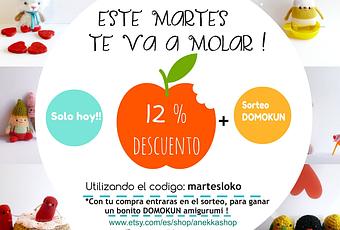 Buenos días !Solo por hoy: 12 % descuento en la Etsy shop utilizando el codigo: martesloko (valido para compras a partir de 30 euros) y ademas participaras en un sorteo para ganar a este Promocion valida solo hasta medianoche !Mucha suerte :))