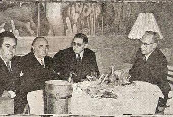 Servera, la Gran Logia Valle de México y el Gran Oriente Español en el exilio. El Gran Maestre del G.´. O.´. F.´. A.´. en su viaje a México en octubre de 1947. Aquí, según nos muestra la fotografía, reunido en un ágape íntimo con -de izquierda a derecha- el Gran Past Master IL.´. H.´. Valentín Rincón, el mismo Miguel Servera, el Gran Maestre IL.´. H.´. Pedro Téllez Maldonado y el Gran Maestre Lucio Martínez Gil.Fuente: Archivos del G.´. O.´. F.´. A.´.