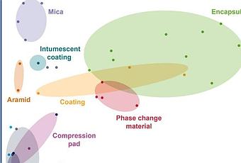 Muchas propiedades son clave para elegir el material óptimo de protección contra incendios, la conductividad térmica, la densidad, el espesor, la rigidez dieléctrica, la temperatura máxima de protección contra incendios y el costo. Cada uno de estos factores es importante de forma aislada, pero debe considerarse a nivel de paquete. Un material puede ser muy liviano, pero si se requiere una gran cantidad para brindar protección, entonces puede que no sea la mejor solución. Del mismo modo, si un material debe combinarse con otros para proporcionar todas las funciones necesarias, esto puede afectar su rendimiento y rentabilidad.