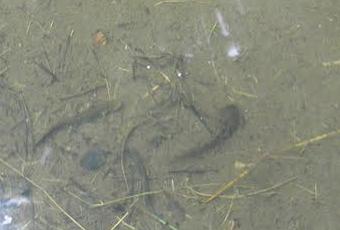 Por ello los renacuajos de sapo partero, a pesar del pequeño tamaño de los adultos, son los que mayor tamaño alcanzan de todos los asturianos. En un abrevadero de Salas donde tengo localizada una población, conviven con varios tritnes ibéricos. Aquí podemos ver una comparación, el tritón, que alcanza unos 8 cm de longitud, es más pequeño que el renacuajo de sapo partero, que alcanza un tamaño de unos 10 cm.