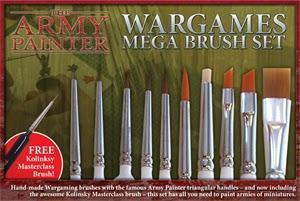 El segundo set,que no es limitado,es el Mega Brush Set.Es un set de 10 pinceles mas 1 extra de regalo.Los 10 pinceles son de su gama de pinceles de mango blanco y triangular para un mejor agarre(No son de mango cilíndrico liso),llamada WARGAMER series.No son de pelo sintético,si no de marta(Los de pelo sintético como los Chaves son de mango rojo) y por los que he usado,son bastante buenos en relación calidad/precio.Yo hace tiempo compre tres en el Goblin Trader de Madrid(Dos de Precise Detail,para mi y para Kit y uno de Detail) y los tres han salido buenos.Uno de Precise Detail me vino son dos cerdas separadas y me di cuenta mas tarde y lejos de la tienda,pero las quite y no ha dado ningún problema con unos cuidados básicos.En Goblin Trader se lo conté y me preguntaron si quería cambiarlo,pero dije que y a cambio me tuvieron un detalle al rebajarme el de Detail y una pintura.Comprado en pack sale por 44,99 euros(45 euros) y si lo coges sueltos salen por 44.Lo cual lo ves y dices "Oferta al puro estilo GW ¬¬",pero luego te fijas que te dan un Masterclass de pelo de marta cibelina Kolinsky y cuando ves que estos pinceles de mango negro suelen rondar entre los 6 y los casi 20 euros según la marca y el numero(Si es un nº 3 como creo que es este,suelen rondar entre los 9 y los 17 euros,que no es moco de pavo,según la marca y la tienda.Ejemplo),entonces piensas que lo segundo mejor(O lo primero,depende) de que por comprarlo todo de golpe te hagan rebaja es que te den un pincel de ese tipo a precio de pincel de los chinos...^_^