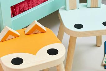 Podemos tunear un taburete modelo FLISAT de IKEA y crear con el un gracioso gato y o simpático conejito. Solo necesitaremos unas piezas de madera, pintura y mucha imaginación. Como muestra estos que hemos encontrado en Petit and Small.
