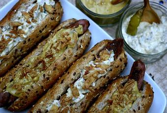Hola a todos... Hoy os traigo unos super maravillosos perritos calientes gourmet, preparados con salchichas frescas artesanales de mis amigos y proveedores habituales de carne online de Masmit, las salchichas las preparé a la parrilla y las acompañé con unas salsas caseras tártara y de mostaza, que le realzan el sabor y le combinan a la perfección, simplemente una delicia!!!