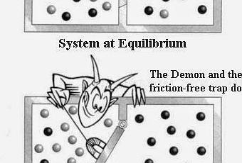 No parece un gran portento hasta que nos damos cuenta que la cantidad de moléculas energéticas es lo que produce la temperatura de un ambiente. El Demonio de Maxwell consigue que el calor (la energía de las moléculas) pase del ambiente con menos temperatura al que tiene más. Esta derrota mítica que el Demonio inflige a la Termodinámica, acostumbrada a que nadie desobedezca sus leyes, es su gran poder.