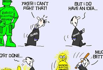 Ilustración que recrea el nacimiento del Hombre de PajaEsquivo mortal, que nunca se deja ver por todos los presentes. Quienes lo invocan dicen que son otros los que lo han visto y quienes se supone que lo han visto pretenden no haberlo hecho o no son capaces de identificarlo. Así transita el Hombre de Paja por la mitología de la argumentación, como personaje protagonista y despreciado. No es que sea tratado injustamente, ni que cargue culpas que no son suyas. Ocurre que su existencia se va formando a medida que es creado por la acumulación de características, siempre negativas, que se le atribuyen. No puede existir de otra manera. Afirmado por quien lo desprecia y negado por quien lo podría defender.