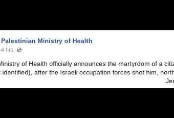 El Ministerio de Salud palestino hoy, tras el atentado terrorista twitteó y colocó en Facebook este anuncio: