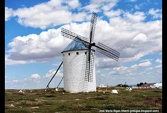 Originalmente se construyeron para aprovechar la fuerza del viento para la molienda del cereal, y para ello se han venido utilizando durante mucho tiempo. Viajando por La Mancha, aquí y allá se ve algún molino clásico disperso, pero en la actualidad lo que más fácilmente se ve son los nuevos molinos, los extensos parques de energía eólica donde los molinos parecen soldados en formación, dispuestos especialmente sobre las crestas elevadas, donde discurre mejor el viento. Soldados que nada tienen que ver con los gigantes de Don Quijote.