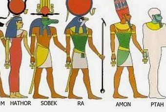 Consigna Terenci Moix en Terenci del Nilo que en la antecámara de la tumba de Tutmés III se esculpió un catálogo de 741 divinidades. Tal profusión de seres metafísicos obedece a razones históricas y políticas, no a un mero capricho. Egipto empezó siendo, en el periodo predinástico, un conjunto de pequeños reinos separados, ciudades-Estado, cada una de ellas con su propio pequeño panteón de dioses. Cuando las luchas entre dichos reinos fueron reduciendo su número, al ir conquistándose unos a otros, los vencedores, en vez de abolir los dioses de los vencidos, los asimilaban, creando panteones más grandes. Al final, Egipto acabó dividido en dos reinos, el Alto y el Bajo Egipto, cada uno de ellos con su propio prolifero panteón divino. Cuando Menes, rey del Alto Egipto, conquistó el Bajo y se convirtió en el primer faraón de la dinastía I, asimiló como se había venido haciendo el panteón de los vencidos. Se creó así el enorme panteón egipcio, tal vez el más numeroso que haya tenido civilización alguna. Pese a tal absurda profusión de divinidades, en realidad no se debía rendir culto real más que a unas pocas: Amón, el dios del impresionante santuario de Tebas; Hathor, la diosa vaca de Dendera y del templo de Hatshepsut; Osiris, el dios-rey de Bubastis y de Abydos; y algunos otros: Horus, Isis, Ptah, Thot, Anubis, Shekmet... La herejía de Akhenatón, faraón que propuso adorar a un sólo dios, Atón, el disco solar, debió de resultar ofensiva no sólo por motivos religiosos, sino políticos: el politeísmo egipcio debía ser una expresión de la diversidad política egipcia, el culto a todos esos dioses debía ser una expresión de respeto a esa diversidad, a la dignidad y antigüedad de cada ciudad, independiente en origen. A muchos debió de parecerles un movimiento centralista. Akhenatón debió de tener enfrente no sólo al poderoso clero de Amón, sino también a algunos nomarcas (gobernadores provinciales) y poderes locales. No ha de extrañar que tal herejía monoteísta no prosperara.