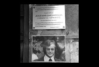 "Este joven de Basauri fue asesinado el 8 de marzo de 1976 por la Guardia Civil que disparó indiscriminadamente contra los miles de personas indefensas que iban en manifestación para celebrar una asamblea. [...]