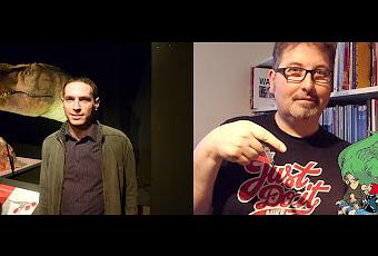 Arnaud Plumeri (izquierda) y Bloz (derecha)Seguramente, muchos conocéis ya el fundamental cómic divulgativo francés Les dinosaures en bande desinée (2010). En Koprolitos te lo presentamos cuando aún estaba caliente en las librerías, como recordarás. Sin embargo, la edición española ha tardado mucho en ver la luz; demasiado. El valenciano Grup Bromera (que integran Algar, Animallibres o Bromera) editó el año pasado la traducción de Paula Soriano del primer volumen al castellano (Las extraordinarias historias de los dinosaurios) y el catalán (Les extraordinàries històries dels dinosaures). En 2022 ha aparecido el segundo (2011), bajo el título Las nuevas historias de los dinosaurios/Les noves històries dels dinosaures. Puedes conseguirlo aquí. Le teníamos especiales ganas, ya que fue precisamente ese segundo volumen el que dio noticia en las viñetas del descubrimiento en nuestro país de Concavenator corcovatus, como también te hemos contado por aquí.