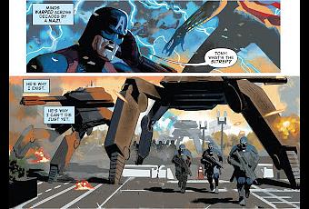Pese a su mammonismo este cómic no tiene mala premisa, es morralla porque nadie quiso aportar originalidad y profundidad. Acuña no se merecía este trabajo puramente alimenticio a nivel empresarial, editorial y guionístico. Pese a lo dicho, aquí el nazismo no está bien metido de modo que es un poco arbitrario el que el villano sea Cráneo Rojo, a la postre es un aspirante a dictador mundial genérico al que sólo se opone en off otro un poco más singular, Doom, pero al menos esta iteración es original en que no tira del racismo y del belicismo. El asunto es que en un futuro próximo, ponle una década, Ultrón (que aparece sólo para dejar en mal lugar a Pym a quien no se le deja defenderse) provocó una guerra entre los superhéroes y los supervillanos que arrasó Boston y por ello los estadounidenses decidieron acabar con los superpoderosos ofreciendo así la oportunidad al villano nazi para medrar. Entonces, tras 2 décadas de propaganda posmoderna, es decir, no repitiendo mil veces una mentira sino diciendo a cada grupo social lo que quiere oír, insistiendo en que la era superheroica era el caos pese a que libertad y orden son incompatibles, y trayendo prosperidad y seguridad a los estadounidenses burgueses mediante la explotación oculta de los otros, Cráneo Rojo entiende que ha llegado el momento de convertir EEUU en una dictadura nazi. Así pues aquí no hay humillación, pobreza y frustración sino todo lo contrario, los que viven bien no están dispuestos a dejar de hacerlo para que otros vivan mejor. El típico egoísmo yanki. La insolidaridad que mantiene a raya el Estado de Bienestar (que es cierto que no es la panacea porque en democracia se convierte en una herramienta populista) y el nacionalismo que los hace manipulables y xenófobos. Aquí la novedad es que se reconoce que la masa es rebaño, no quiere saber y siempre busca un pastor. Se deja comprar por el que la da prebendas y la dice que la protege del lobo. Este es el desafío del Capi. Pocos quieren hacer lo correcto si (creen que) ganan más siendo egoístas. Esto es así porque para Zdarsky Cráneo Rojo es ante todo un megalómano. Por eso aquí el nazismo es egoísmo. Cráneo Rojo está a punto de triunfar porquentiende al estadounidense adulto medio, la propaganda sólo puede triunfar así, lo importante no es la realidad sino las creencias porque la masa no es suspicaz y analítica y está desinformada, algo que no hace ningún superhéroe, en especial el Capi, que representa lo contrario de una oveja, que no es el lobo sino el héroe, el que sesfuerza y arriesga por puro altruismo. El error fatal de Zdarsky es que pinta a los superhéroes como padres protectores y estos son muy similares a los pastores así que no diferencia lo suficiente a los buenos de los malos. Los primeros son más amables y liberales pero también producen masa aburguesada. Quizás no habría problema si Zdarsky hubiese descrito mejor el plan del villano, Cránero Rojo parece pensar que la amenaza al bienestar produce fascismo, y a este EEUU extersionador (o me pagas o te lanzó todo mi complejo industrial-militar o Hulk y Iron Man, por eso estos personajes mueren). Como no es así al final Cráneo Rojo pierde porque Loki quiere, y como su hueco lo vuelve a ocupar el Capi, el monstruo nazi que hay en cada estadounidense adulto medio se vuelve a dormir de modo que EEUU acepta autolimitar su egoísmo. Por eso la historia acaba estrellándose. Aceptar un papi bueno en vez de un pastor no es un gran final. Pero la mitomanía yanki y el negocio de marcas siempre han de ganar. Así, aquí, como es normal en la ficción de EEUU, los estadounidenses hacen los que les dicen por lo que todo depende de su líder, si es malo hacen el mal y si es bueno hacen el bien. La realidad es así. La masa es como su líder quiere que sea. Pero este cómic trata de ser crítico con la actitud burguesa de rebaño así que fracasa por encumbrar lo que pretende combatir. La gente no es más libre bajo un dictador benévolo que bajo uno megalómano. Este obliga a hacer lo que quiere pero el otro no deja hacer lo que le disgusta. No hay diferencia esencial entre obedecer al padre o al pastor. Si el Capi actúa por su cuenta no se diferencia esencialmente de Cráneo Rojo. Por eso el error de Zdarsky es hacer que el primero use la fuerza unilateralmente porque su bondad no puede con la propaganda ya que desa manera se asemeja a su opuesto: se impone mediante su poder. Cráneo Rojo va a emplear la fuerza para dar un autogolpe de Estado y el Capi usa la fuerza para destruir al villano mientras está delinquiendo, ninguno actúa por petición de la masa. Si la democracia es lo correcto entonces el Capi está mal escrito. Él debe ayudar, no proteger. Por eso el final desta miniserie es una monarquía. Al Capi le sucede el hijo de Iron Man y Avispa porque por lo visto en el Universo Marvel la bondad es genética, por eso sólo sencuentra en la aristocracia. La dificultad aquí es que el héroe es incompatible con el pueblo, Atenas dejó de ser una democracia cuando dejó de mandar al ostracismo a sus héroes, y Roma dejó de ser una república cuando pasó de dominar a sus héroes a idolatrarlos. Al final EEUU es protonazi porque es masa, siguen al líder en vez de hacer queste le siga. Aquí no se ve a un estadounidense del montón protestar activamente porque su bienestar depende de la injusticia y el sufrimiento de los otros y siempre se les ve delegar todo en los que creen buenos, antes al Capi porque había vencido a los nazis, luego al alter ego de Cráneo Rojo porque les daba cosas en vez de sermones, y vuelta al Capi sólo porque la vía fácil se ha comprobado que era mera ilusión. Son crédulos y no quieren hacerse preguntas y por eso han de ser tutelados. Esto no es una victoria del Capi sino su derrota así questa historia es fallida. Este cómic, para dar la lección que quería, tenía que haber hecho que el pueblo tomase la iniciativa, que el hér