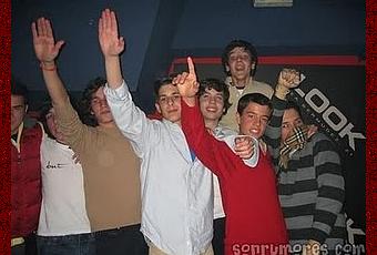 En la imagen, grupo de pijos fotografiados haciendo el saludo fascista en el interior de la discoteca madrileña Look.
