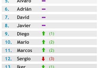 La verdad es que la cosa está un poco parada y no hay ningún cambio entre las 8 primeras posiciones respecto al 2009. Daniel, Alejandro y Pablo continúan inamovibles en las tres primeras posiciones y, por su parte, Hugo y Álvaro conservan su 4º y 5º puesto después de su ascensión el año anterior.