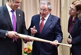 El gobernador Cuomo regaló a Raúl un bate de baseball de la Adirondack Bat Company, de Dolgeville, en Nueva York. Foto en TWITTER / @NYGovCuomo