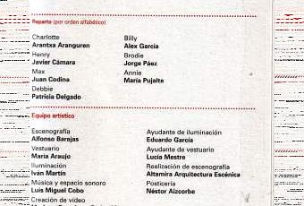 Vamos a centrarnos en la primera parte del programa. En primer lugar encontramos el título que se ha dado en nuestro idioma a la obra dramática, subtitulada con el título original en inglés, y el nombre de su autor. A continuación viene lo que podríamos llamar el segundo autor: la palabra versión se refiere al que ha realizado una traducción de la obra para esta representación concreta y ha realizado una adaptación dramatúrgica para su puesta en escena en este país y en este momento.