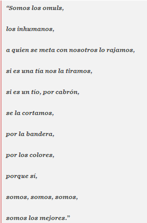 ¿Quien no inculca a los niños valores como los que la letra del himno motivador de unos niños de 10 años utilizaba en una Escuela Municipal?... es que las noticias exageran e incluso algunos se atreven a valorar esta situación habitual. Los padres -como así debe ser- apoyan a los entrenadores y presuntos autores de letra y música, también lamentan la difusión de algo que debió quedar en casa. Es que incluso se da por hecho que en un futuro próximo estas letras se estudiarán en los cursos de formadores y los chavales seguirán viendo en su padre al idolo de todos los niños, un tal Peter Griffin. Vaya desde aquí nuestro apoyo también a unos formadores ejemplares que jamás deben ser cuestionados, ya que su futuro como compositores de "rap" -del mas cutre, eso sí- está garantizado. Todo sea por los colores, la bandera... y si los niños no llegan a ser futbolistas en un futuro, ya saben en donde suelen tener éxito este tipo de letras, pero con cuidado ya que en los fondos ultras ahora hay mucho mas control que el mundo de los niños.