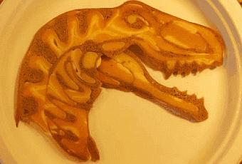 Aunque es ilustrador y profesor de matemáticas, una de las pasiones de Nathan Shields es cocinar pancakes para sorprender a sus hijos. Ha hecho tortitas con forma de animales, de plantas, de personajes de películas, con recreaciones de escenas históricas, etc. Y como no, de dinosaurios y otros reptiles extintos. Aquí dejamos una muestra de su labor como maestro del pancake: