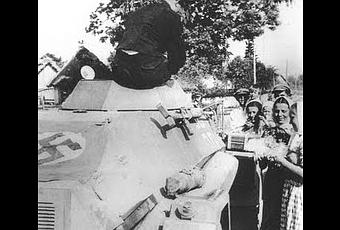 Una de las tantas escenas de adhesión con que los ciudadanos de la Unión Soviética han prodigado a la Wehrmacht, que los libera del yugo soviético.