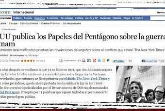 "....Ellsberg, analista en nómina del grupo de estudios (think tank) Rand Corporation -organización que fue contratada por el Pentágono para realizar una serie de análisis secretos sobre la guerra-, descubrió que tanto la Administración de Kennedy como la de Johnson engañaron a la opinión pública sobre la guerra de Vietnam, desde los ataques del Golfo de Tonkin hasta el bombardeo de Camboya y Laos pasando por las declaraciones de Johnson en 1964 que aseguraban que se estaba procediendo a una salida del conflicto cuando en realidad se preparaba una escalada. Todo era una fabricación para implicar más al país en un conflicto que perdió y cuyas cicatrices siguen sin cerrarse..."Leer todo el artículo