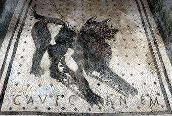 En alguna de las domus de Pompeya se han encontrado mosaicos de perros con la inscripción Cave Cane (cuidado con el perro), por ejemplo en la casa del poeta trágico o en la casa de Próculo.