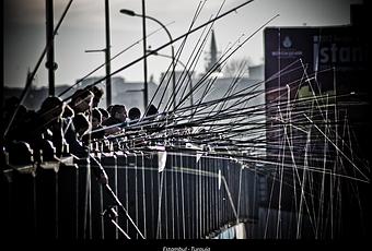 Segundo reportaje fotográfico del blog... Le puse un nombre en inglés, por la sencilla razón de que me gusta como suena: "Fishing in the Golden Horn", que traducido sería "Pescando en el Cuerno de Oro".El Cuerno de Oro es un estuario a la entrada del estrecho del Río Bósforo, en la ciudad turca de Estambul... Decir que el Cuerno de Oro está en Estambul es un error, puesto que es exactamente al revés: la ciudad (antiguamente llamada Constantinopla y más antiguamente aún Bizancio) se formó alrededor del estuario, debido a su excelente ubicación como puerto natural exactamente entre Europa y Asia. Pues bien, en el Cuerno de Oro existen en la actualidad 4 puentes (y un quinto en construcción) que comunican un lado y otro de la ciudad. Aquí una aclaración para no confundirse: los puentes que atraviesan el Cuerno de Oro comunican Europa con Europa, es decir comunican las dos partes de Estambul que se encuentran en continente europeo. Hago esta aclaración porque hay además dos grandes puentes (Puente del Bósforo y Puente de Faith Sultan Mehmet) que comunican la parte europea con la parte asiática de la ciudad... Pero nadie pesca allí, pues son puentes gigantes con una altura considerable, exclusivamente para el paso de vehículos....
