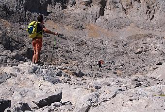 buscando el cresterío del espolón N el tramo final por el espolón N. tiene pasos de II, aéreos y expuestos y nos encontraremos un muro de unos tres metros con un paso de III